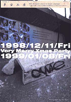 12月はゲストに佐野くんの同士、中村智昭(Phat Is Jazz?)を迎えてのあったかいパーティ。そして、この時よりアートワークには、Akinoちゃんが担当することに。現在の夢宙工房の原形がこの時から正式にスタートしたのです。佐野くん歌ってたなぁ。。。思い切り。(笑)
